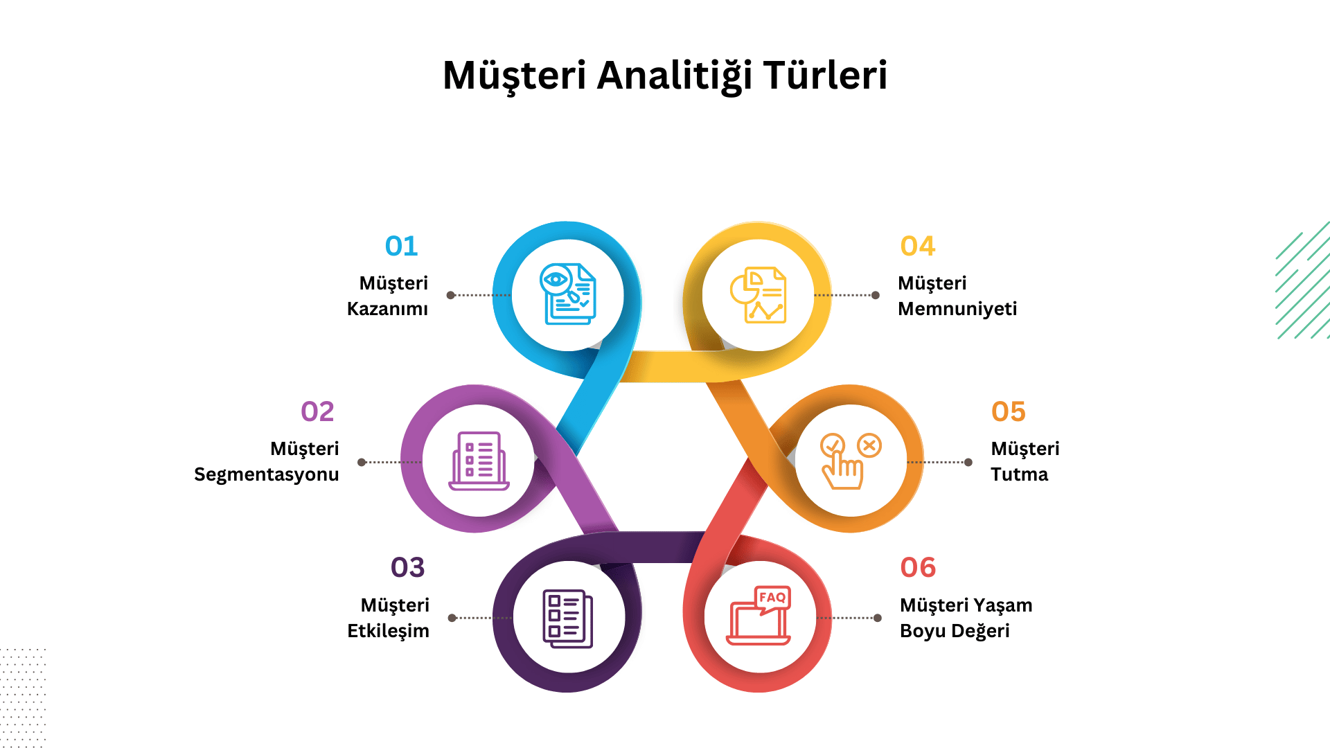 Şimdi, hedef kitlenizle nasıl etkileşim kurduğunuzu dönüştürebilecek altı temel müşteri analitiği türünü inceleyelim.